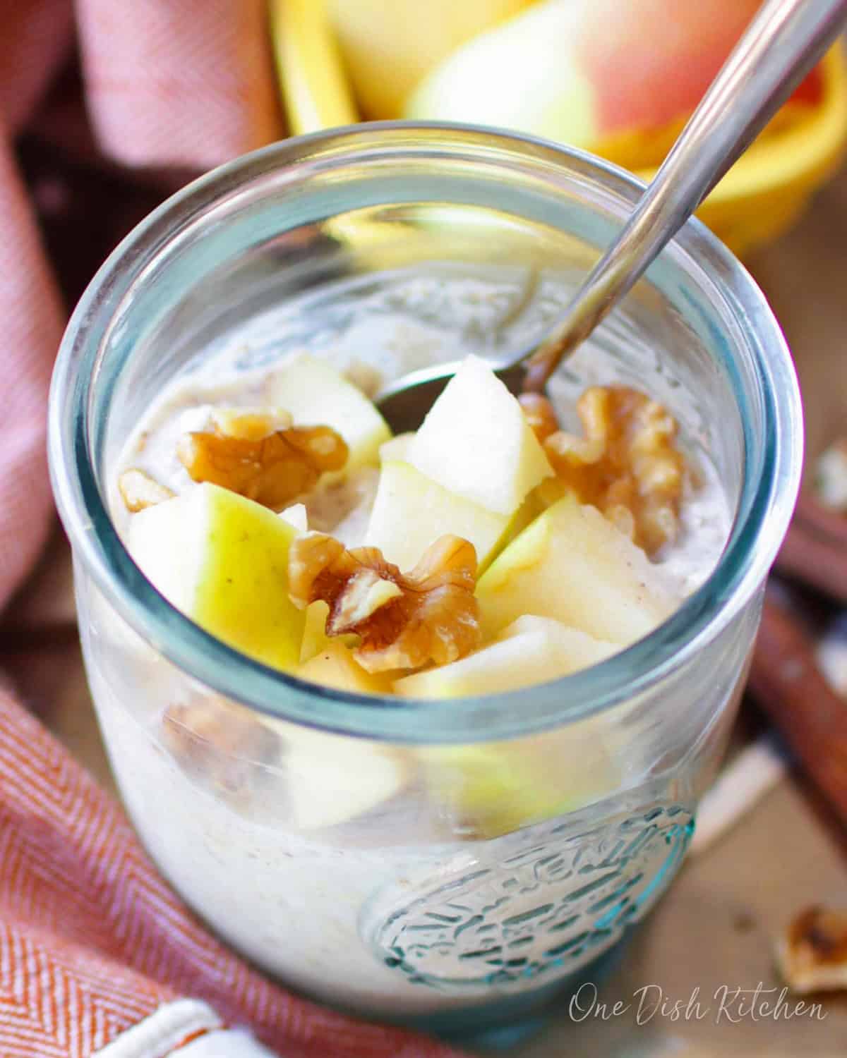 - Stir before eating and add walnuts or extra diced apples, if desired.