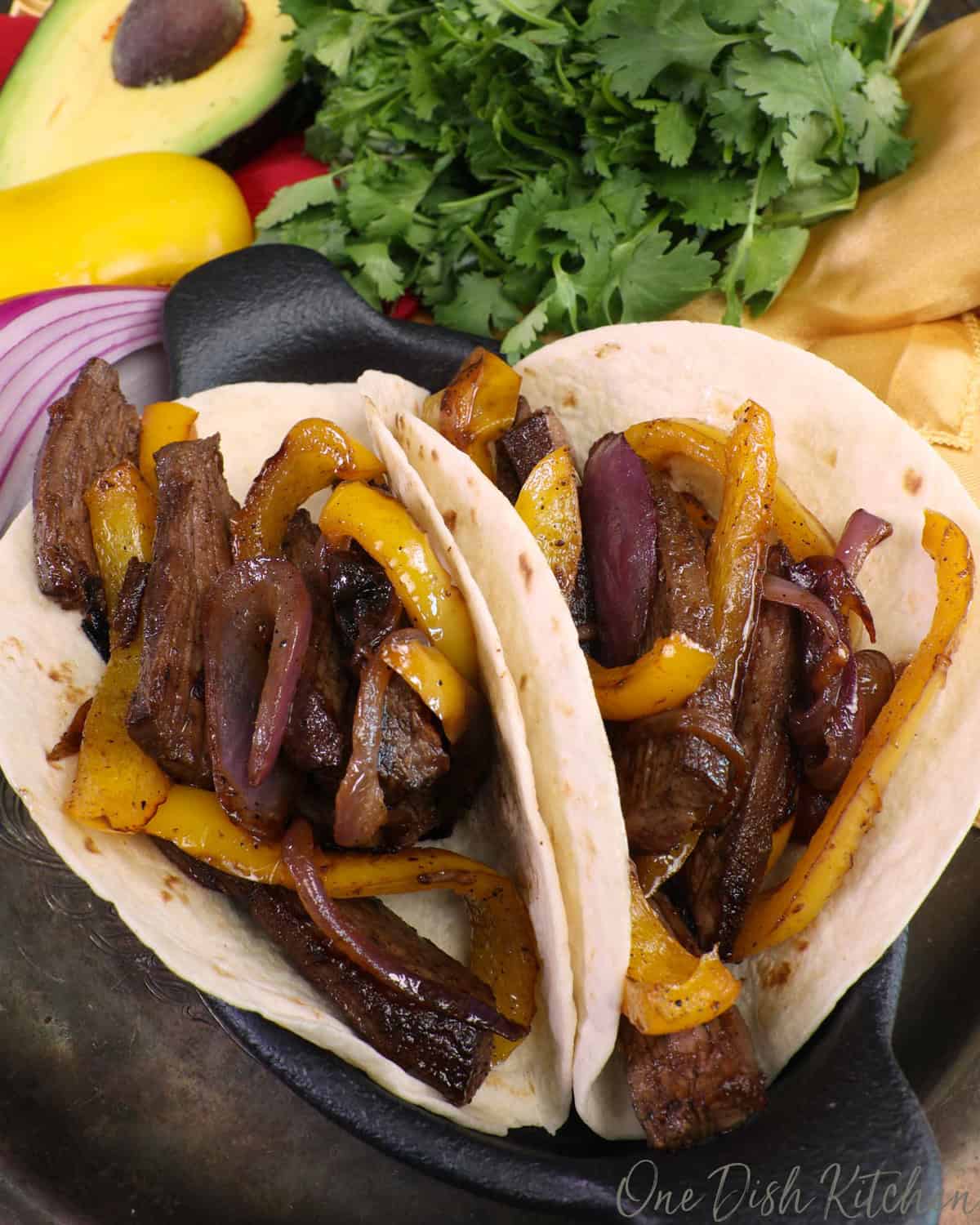 - Serve: Spoon the steak and vegetables into warmed tortillas. Add your favorite toppings like sour cream, cheese, guacamole, pico de gallo, or cilantro.